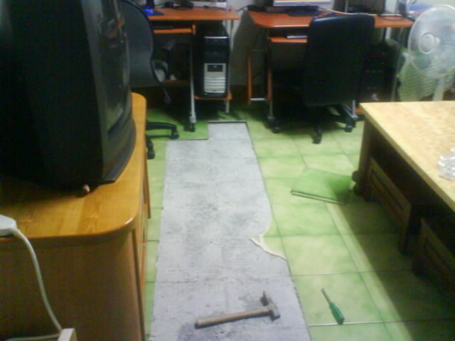 房屋修繕/貼上地磚 ~ 現(xiàn)在地坪施工法大部分都是用半干濕水泥沙下去刮平,以前的工法是用濕底的.它們的差別在于:濕底的只在表面上灑上水泥粉在上面沾磁磚,因黏度不夠容易造成膨鼓, 半干濕底的是抹上一層海菜水泥膏或粘度更佳的磁磚專用粘著劑失敗的概率較低.