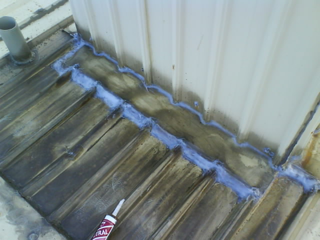 高雄抓漏-鐵皮屋漏水修繕 在積水的部位做上三度防水層,讓積水的位置可以裝水而不會滲漏水,釘頭和烤漆浪板搭接縫也可能是漏水的因素.用速利康(填縫材)全部補(bǔ)修.風(fēng)也是影響漏水的原因,可將雨水以不同的角度吹入縫隙,而造成漏水.