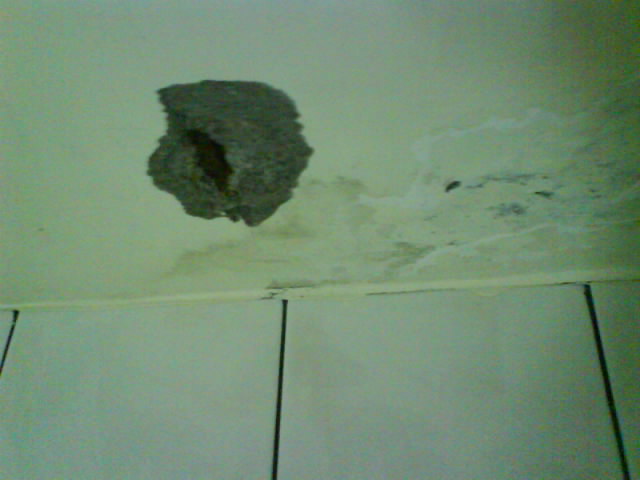 屋頂防水抓漏-民宅油漆修繕 上圖可以看出天花板滲水已有一段時(shí)間,掉落的水泥漆粉末實(shí)在讓人很頭痛,看起來又很難看,又影響呼吸道的健康.若只是施作油漆補(bǔ)修也是無效,要從根本治療才無后顧之憂