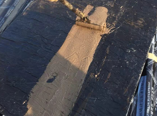 5、廠房彩鋼瓦屋面(天溝 、搭接縫、采光板、風(fēng)機等設(shè)備)薄弱部分做完增強層之后,進行防水涂料一布四涂施工。